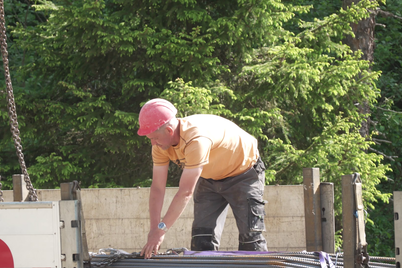 Die ersten Stützen der neuen Anlage werden positioniert und fixiert