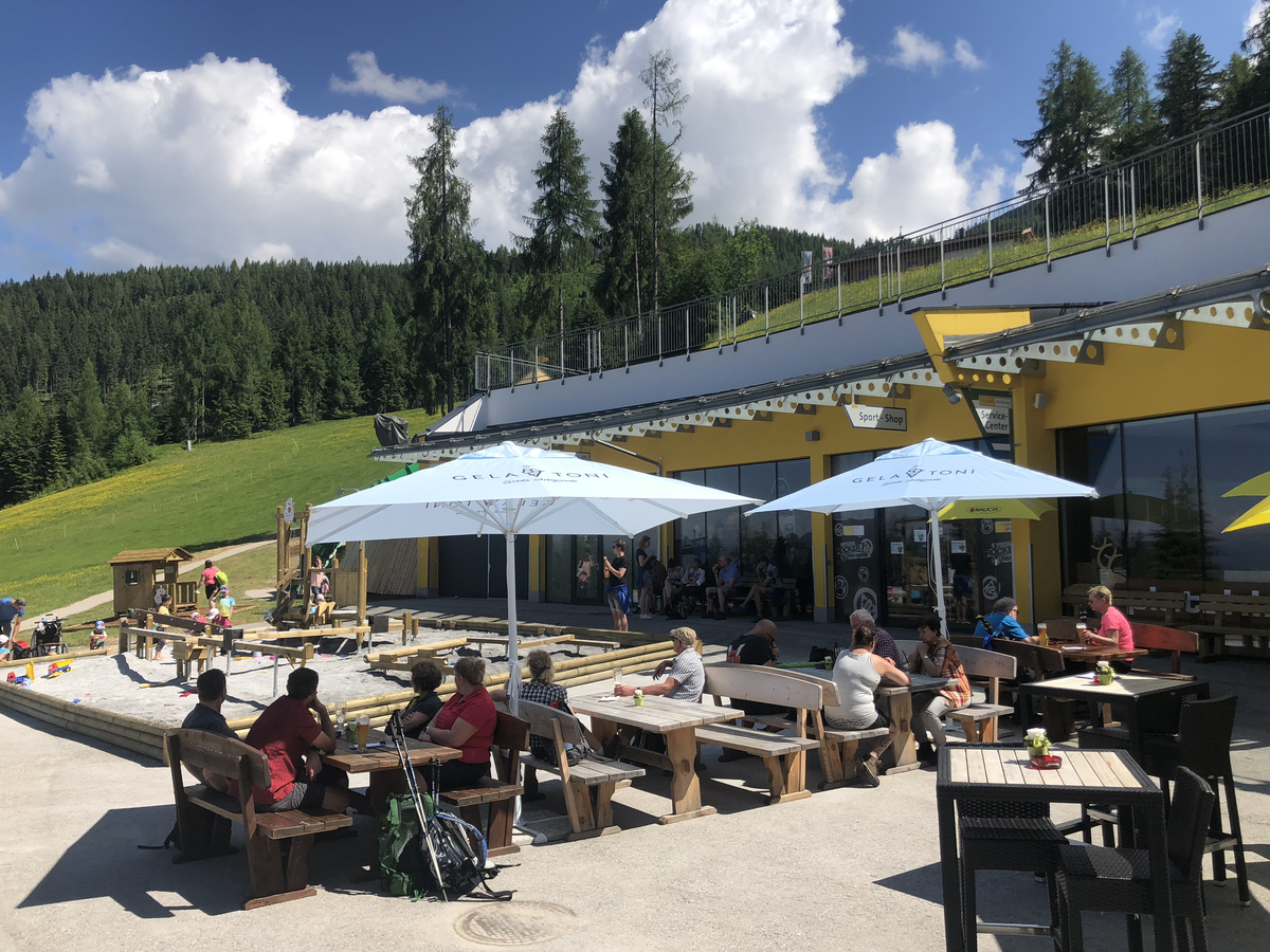 An der Bergstation der 8er-Gondel lädt die SCHAFwerkstatt – früher unter dem Namen „Platzhirsch“ bekannt – im Sommer zur entspannten Einkehr ein. Auf der großzügigen Sonnenterrasse genießen Gäste köstliche Kuchen, beliebte Eissorten und liebevoll zubereitete Snacks, die für kleine Genussmomente zwischendurch sorgen. Die gemütliche Atmosphäre und der Blick auf die umliegende Bergwelt machen die Rast zu einem besonderen Erlebnis für die ganze Familie. Während die Erwachsenen entspannen, können Kinder in der SCHAFwerkstatt ihrer Kreativität freien Lauf lassen: Beim Basteln, Malen oder Werken entstehen kleine Kunstwerke aus Holz, Wolle, Seife und vielem mehr. So kommt garantiert keine Langeweile auf und die Einkehr wird für Groß und Klein zum Highlight.