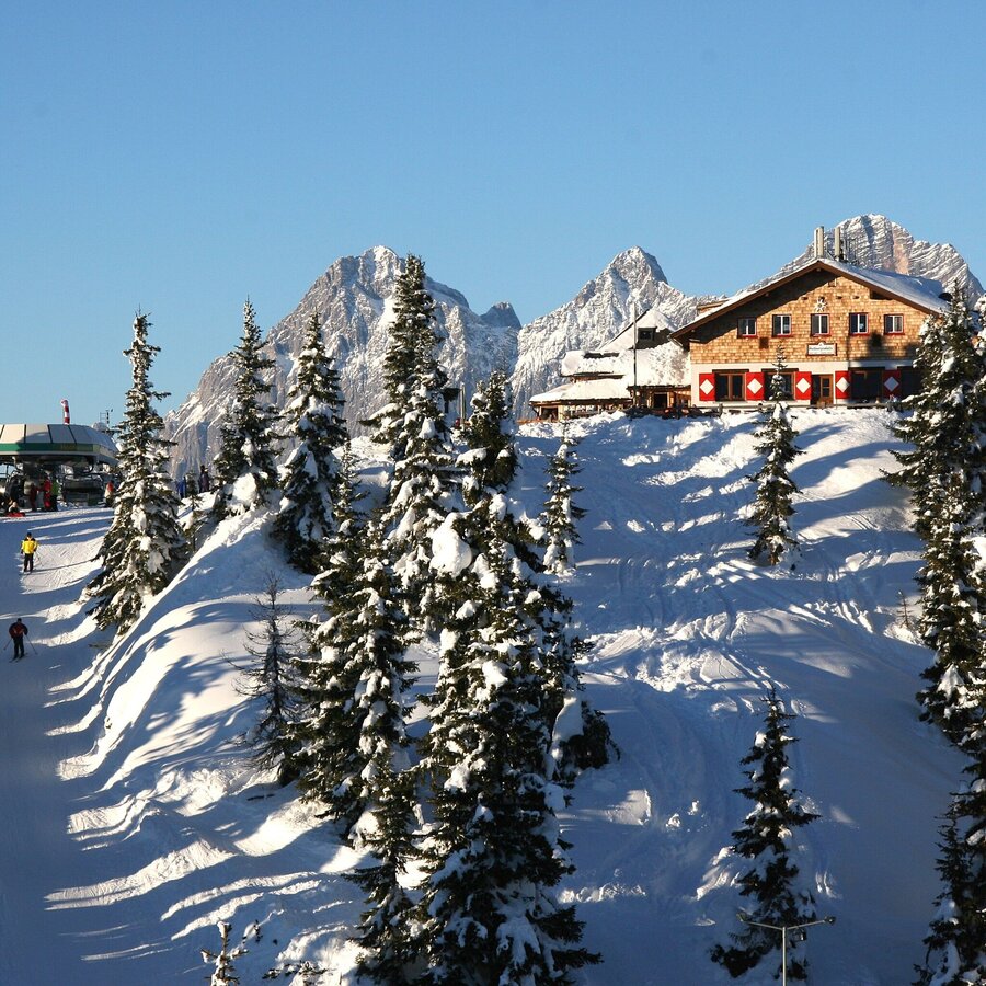 - Ideale Winterwanderung für jeden, der gerne Skifahrer-Freunde zum Essen auf einer Hütte treffen möchte.