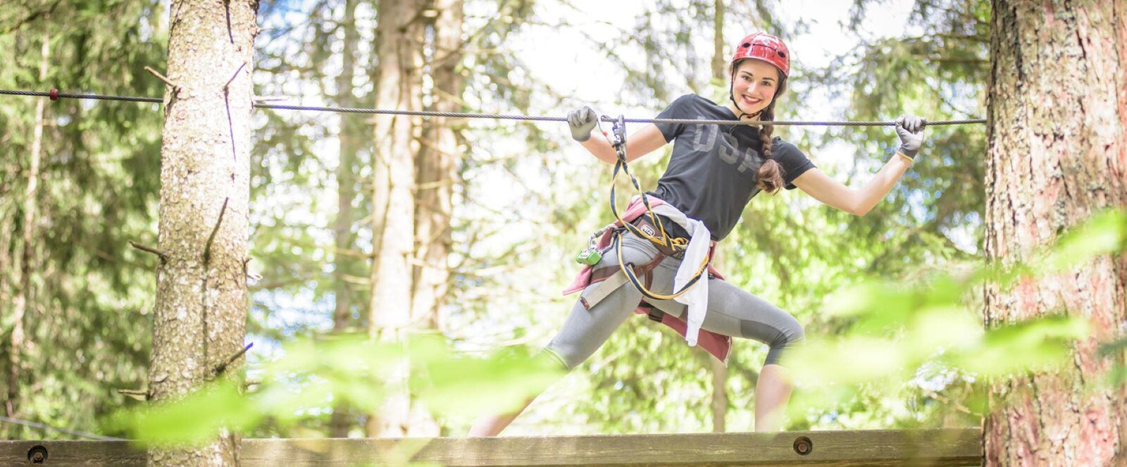 Mit 22 verschiedene Parcours, 200 Stationen und einer Kletterstrecke von 2000 Metern ist unser Abenteuerpark der größte Kletterpark Österreichs! Die Kletterstationen in den Schwierigkeitsgraden violett, lila, grün, gelb, blau, rot, und schwarz warten darauf, von Ihnen erobert zu werden. Auf einer Fläche von 20 000 m² erwarten Sie ein Baumwipfelweg in Form von verschiedenen Parcours. Vom Kinderparcours ab 3 Jahren bis zu den schwarzen Parcours erwarten Sie spannende Klettererlebnisse für Jedermann. SafetyLine - das durchgehende Sicherungssystem - ein entspanntes Klettern für Eltern und Kinder.