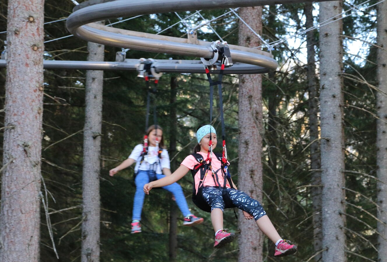 Das neuartige System ist eine Art Mischung zwischen Achterbahn und Flying-Fox – eine Kurvenbahn, die sich durch den Wald schlängelt.
