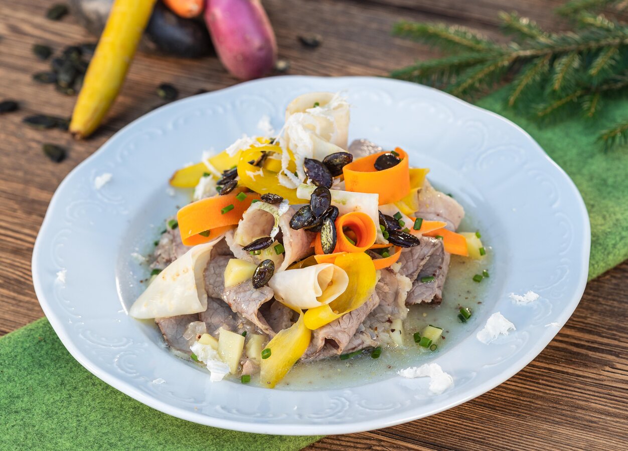 Und wenn Du nach einer deftigen Suppenschüssel oder einem Krapfen mit echtem Steirerkäse oder Honig gestärkt bist, kannst Du auf der Terrasse bei einer Tasse Kaffee das wunderschöne Panorama des Dachsteinmassivs genießen.