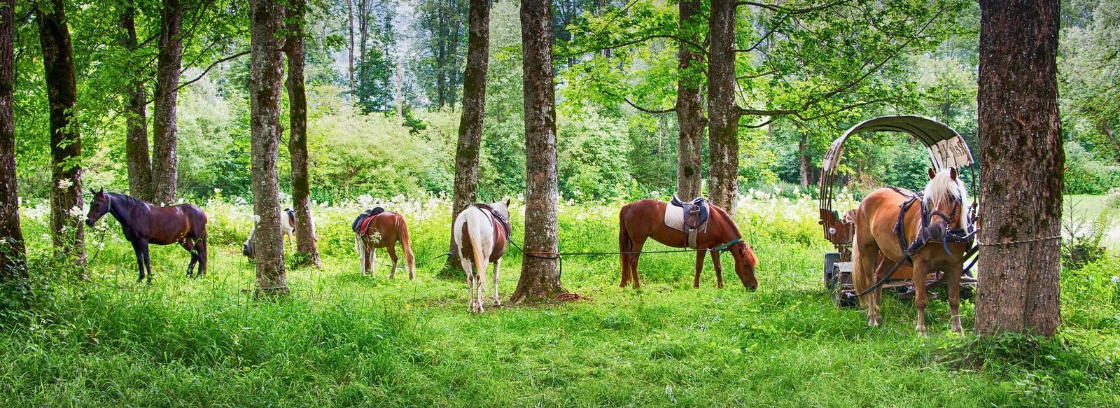 Mit dem Pferdeschlitten oder der Pferdekutsche zu gemütlichen Einkehrorten.