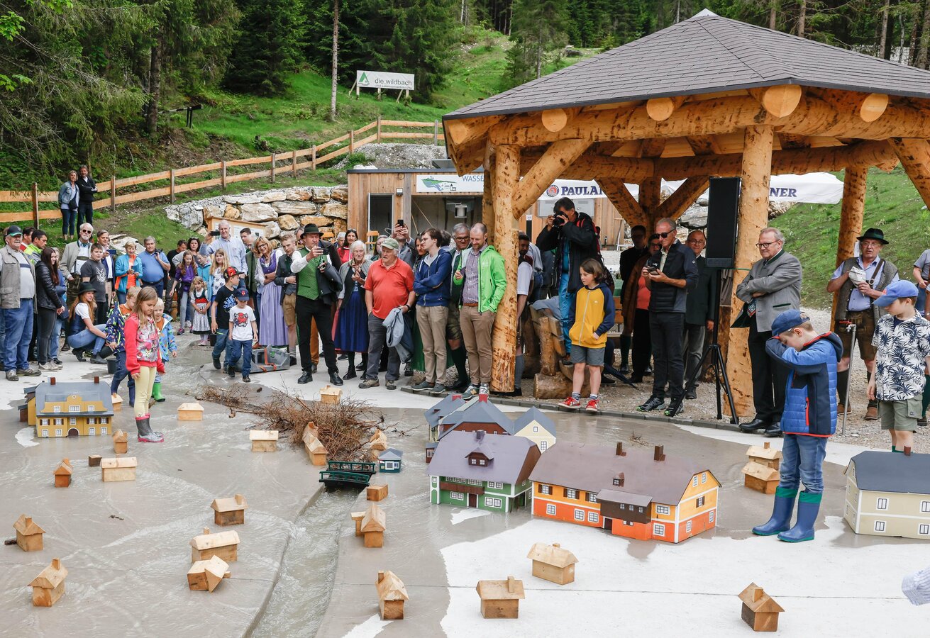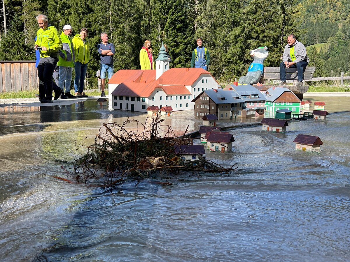 Im einzigartigen Naturgefahren-Simulationsmodell “Wassererlebnis Öblarn” werden lehrreiche Führungen angeboten, die Bewusstseinsbildung mit Spiel und Spaß verbinden.
