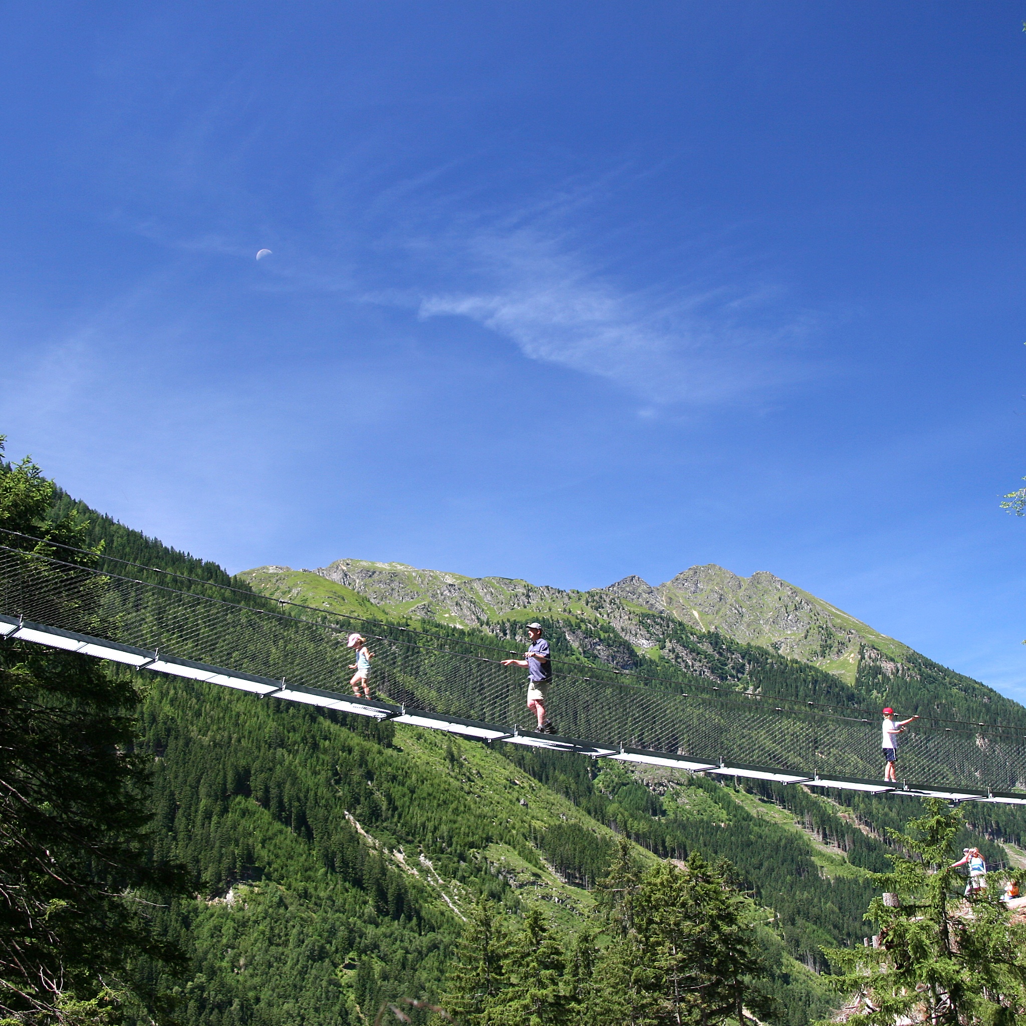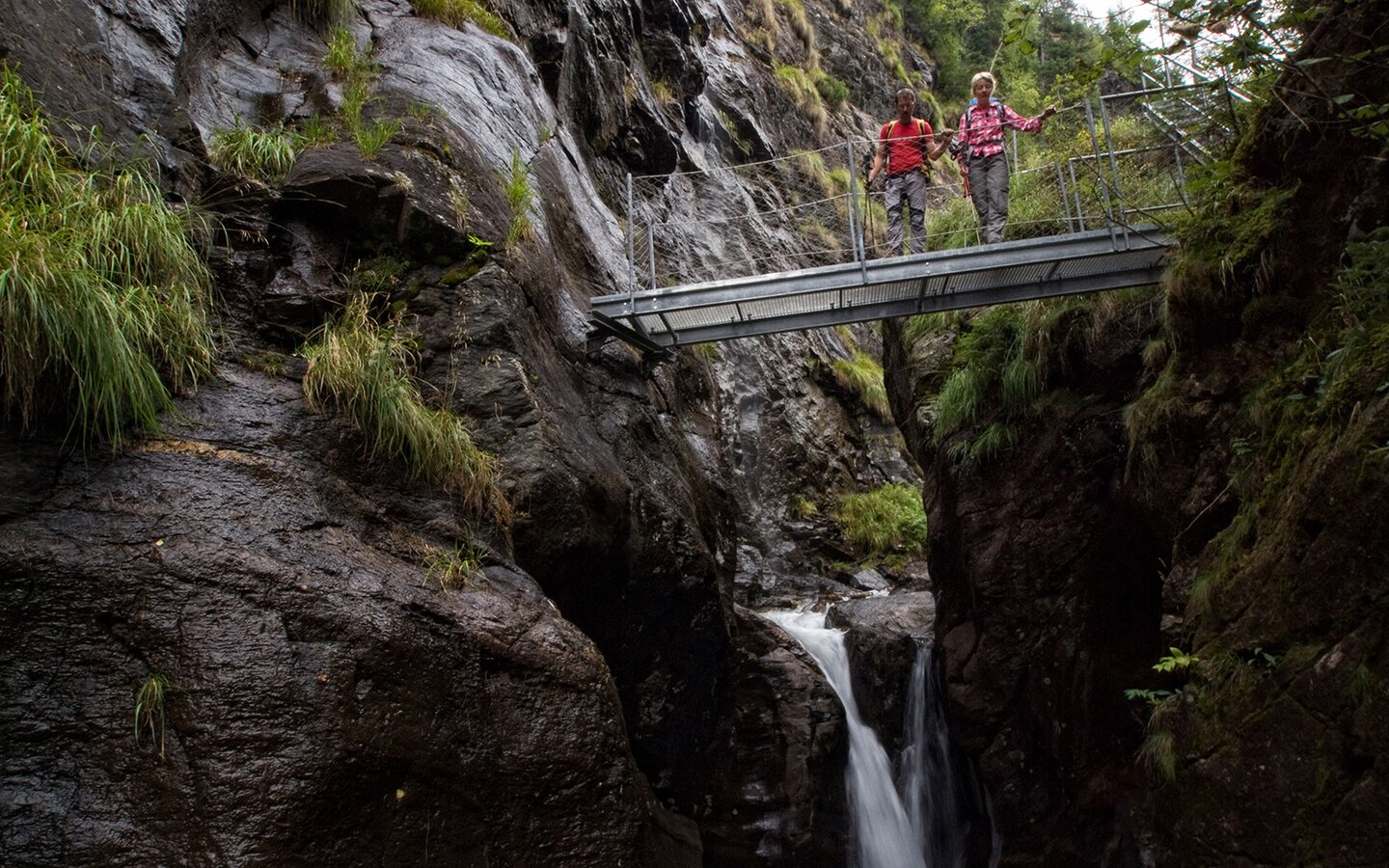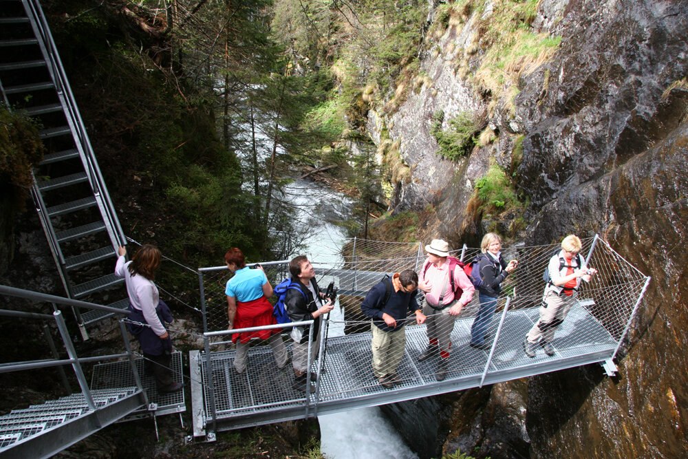 Der Alpinsteig "durch die Höll" führt dich entlang des Riesachwasserfalles zum Riesachsee. 140 Meter donnert das Wasser über 2 Stufen ins Untertal hinab. Es handelt sich dabei um den höchsten Wasserfall der Steiermark. Das Highlight des Weges: die 50 m lange Hängebrücke.