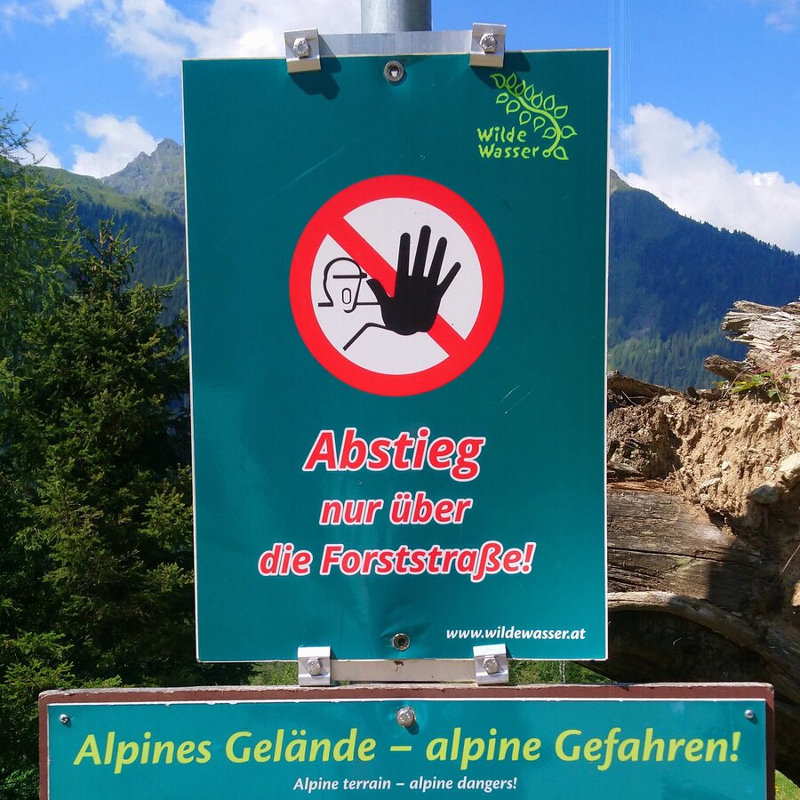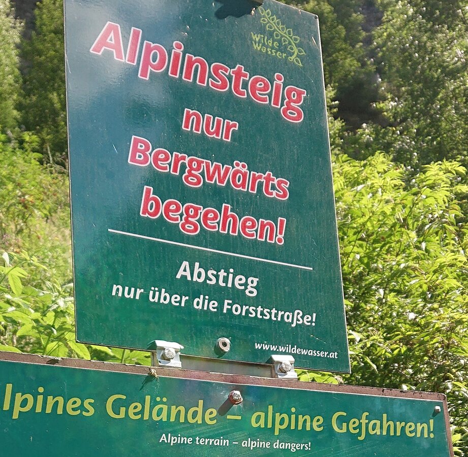 Alpinsteig - Trittsicherheit erforderlich. Nicht geeignet für Kinder unter 8 Jahren und Hunde!