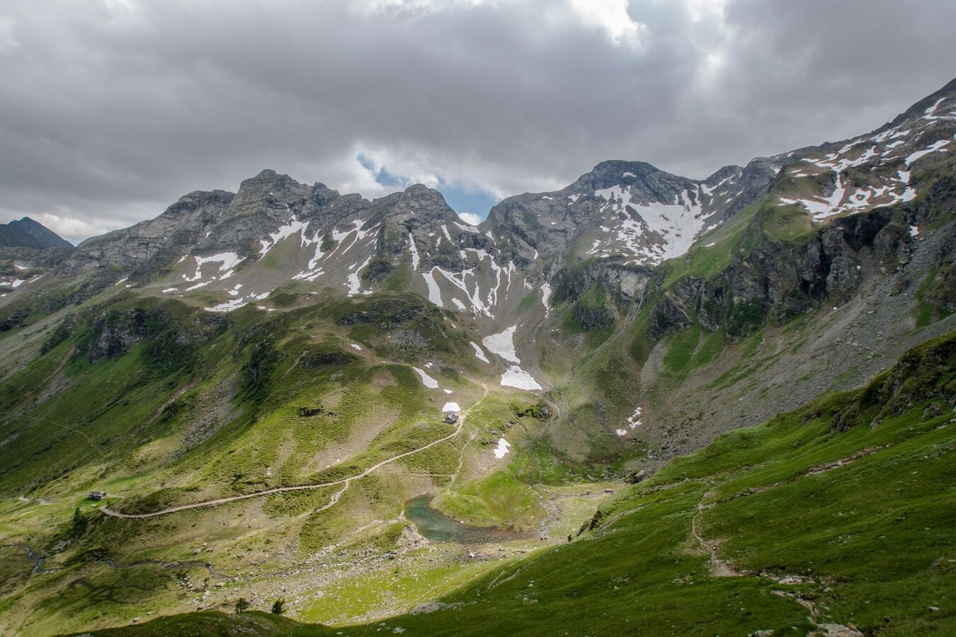 Die 2. Tagesetappe des Schladminger-Tauern-Höhenweges startet bei den Giglachseen. Von dort folgt man dem Weg Nr. 702 durch das Vetternkar bis zu einer alten Bergbaubehausung. Die Berge rings um das Vetternkar waren über Jahrhunderte Abbaugebiet für Silber und Nickelerze. Vom Vetternkar steigt der Weg in vielen Serpentinen bergauf zur Rotmandlspitze auf 2.453 m. Jahreszeitlich bedingt führt der Weg über ausgedehnte Schneefelder bzw. Geröllfelder zur Krukeckscharte. Von der Krukeckscharte nun dem Weg abwärts zur Keinprechthütte folgen.
