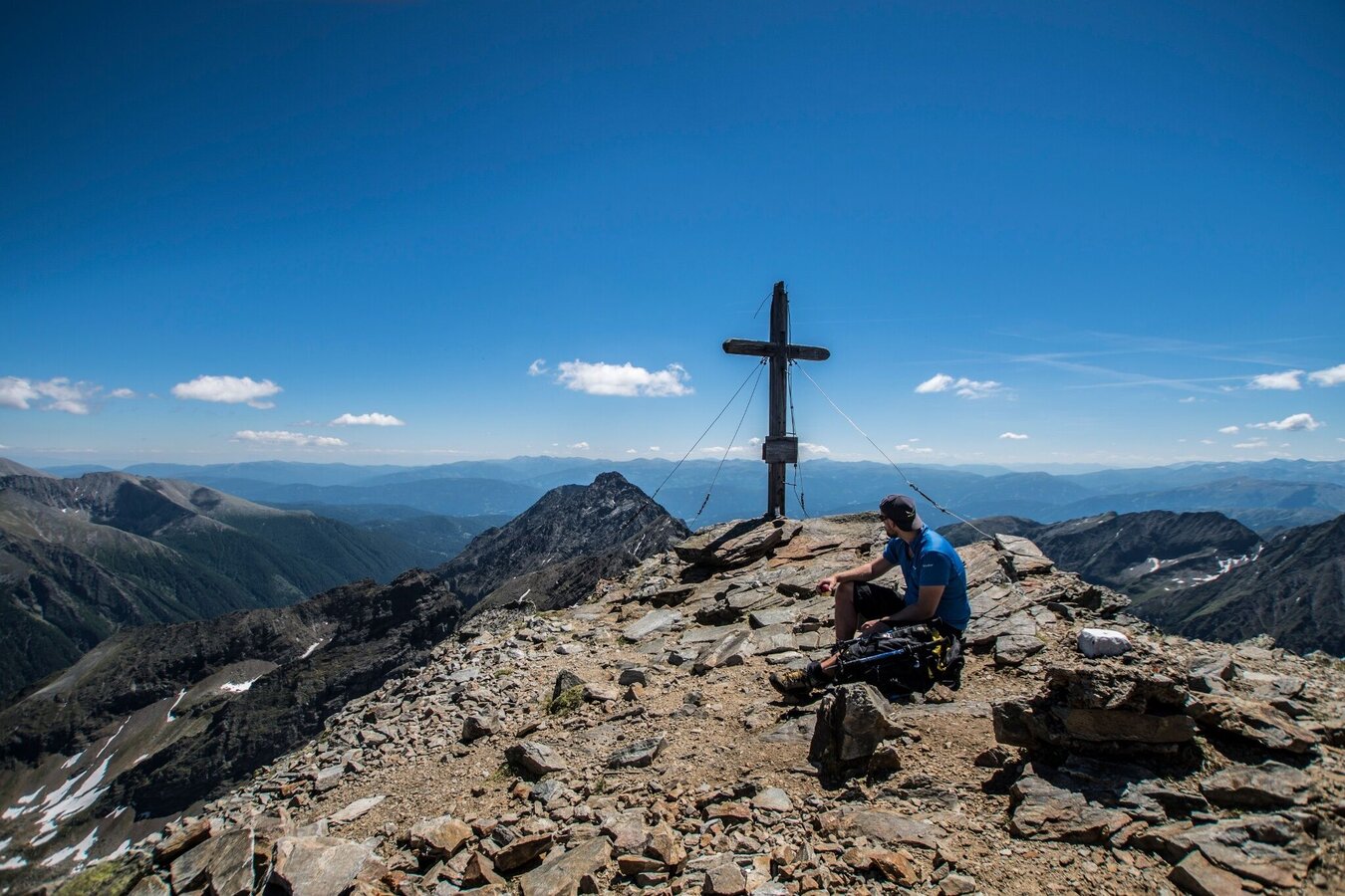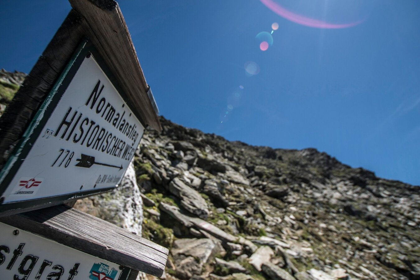 Von der Scharte hältst Du Dich links und steigst über diverse Felsschultern und Schrofenrinnen über die Westflanke zum Gipfel. Im letzten Anstiegsdrittel zweigt links der schwierige Anstieg über den Westgrat vom Normalweg (Historischer Weg) ab - er bietet einige interessante leichte Kletterstellen. Zurück geht es auf dem selben Weg. Bei der Gollinghütte hast Du Dir dann eine ausgiebige Rast und Einkehr verdient.