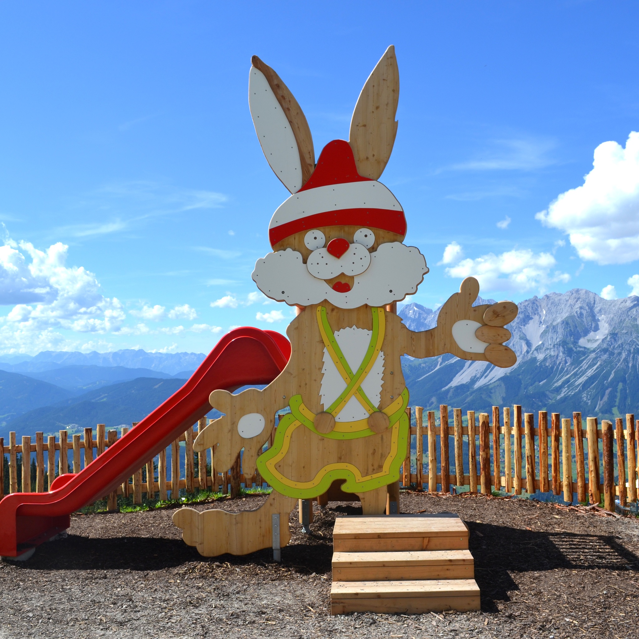Sommerfrische am höchsten Spielplatz der Steiermark - das Hopsiland befindet sich auf einer Seehöhe von 1.800 m. Verschiedene Stationen - umgeben von Bergwald und -wiesen - lassen Kinderherzen höher schlagen.