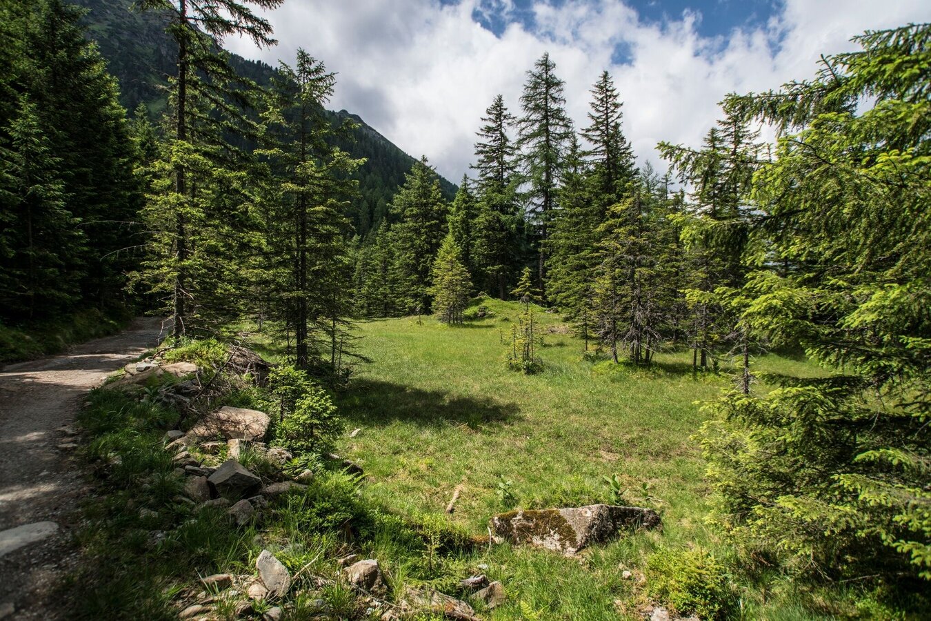 Waldweg, Waldsteig, Forstweg und Almsteig