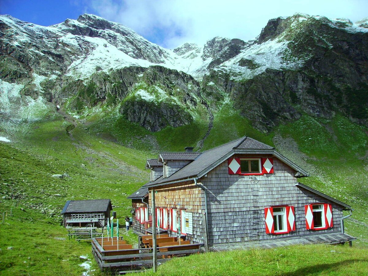 Schöne Wanderung am Talschluss des Obertales zur Keinprechthütte, die inmitten des historischen Bergbaugebietes rund um Zinkwand und Vetternspitze liegt.