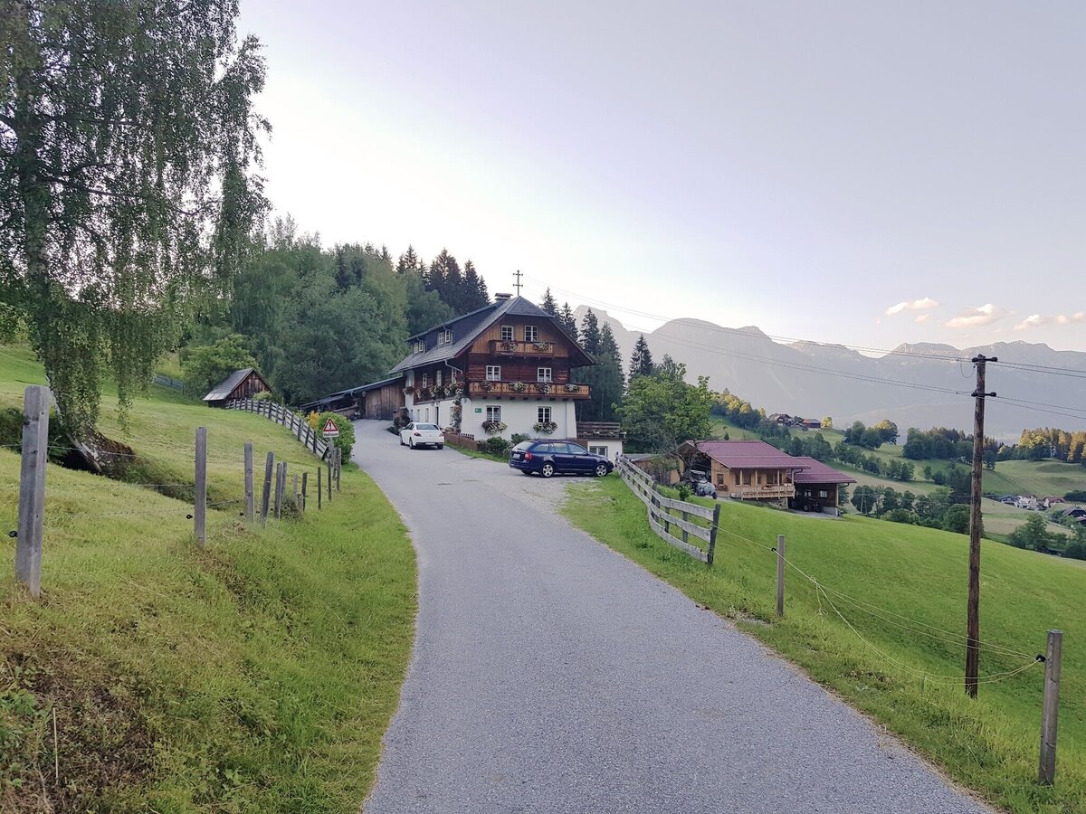Während Du leicht bergab dem Obertal zuwanderst, solltest Du die schöne Aussicht sowohl in das Untertal als auch in das Obertal genießen. Beim Anwesen vlg. Sonnleitner erreichst Du das Wegkreuz Rohrmoos-Südweg/Knappenweg und wanderst hier der Straße entlang bergwärts zum Anwesen vlg. Pocher wo Du zur Johannahöhe und dem Schwammerlweg gelangst.