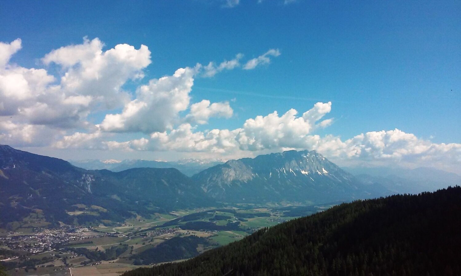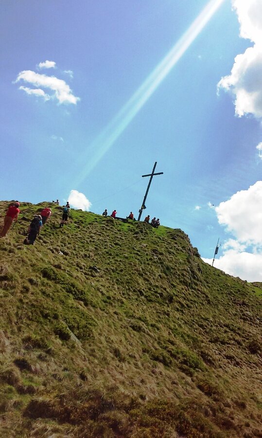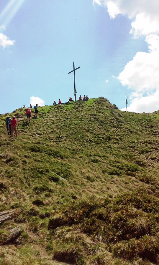 Der Anstieg zum Gipfel beginnt mit einer Steilstufe auf einem Fahrweg. Nur wenige Flachstücke unterbrechen den Aufstieg. Meist geht es im Wald bergauf, fallweise von einem schönen Tiefblick in das Sattental unterbrochen, bis zum Wegkreuz Loskögerl (1.548m). Nach 2 Stunden erreichst Du das Gipfelkreuz des Kochofen mit herrlichem Blick ins Ennstal.