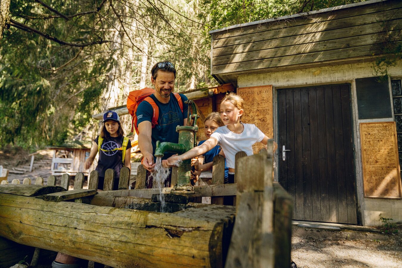 Der Sattelberg ist der perfekte Ausflugsberg für das Naturerlebnis mit der Familie. Der erste Österreichische Natur- und Umwelterlebnispfad ist nicht nur für die Kinder spannend und interessant, auch Eltern und Großeltern werden dabei ins Staunen kommen und noch einiges lernen. Der Lehrpfad führt über einen Rundweg auch auf den Sattelberg-Gipfel und hält noch mehr bereit: der Ramsaurier Zwergerl-Bauernhof (mit Schau- und Spieltafeln in Kleinkindergröße) ist ein Spielparadies für die Jüngsten und befindet sich direkt bei der Sattelberghütte. Neben dem großen Waldspielhaus und der „Kleinen Ramsauer Wasserwelt“ entdeckt man bei der Wanderung am Natur- und Umwelterlebnispfad der Ramsau auch drei echte Kinder- sowie Jugendklettersteige, die man im Rahmen des Ramsauer Klettersteigscheines absolvieren kann. Ein Teil des Weges ist auch mit Kinderwagen befahrbar.
