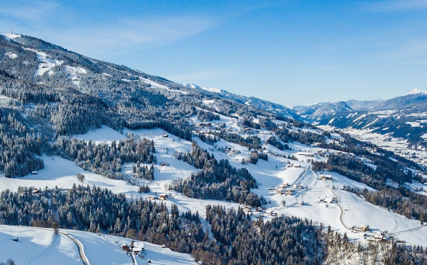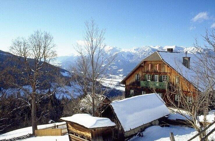 Vorbei an einer Straße mit großartigem Panoramablick mit traditionellen Bergbauernhöfen, entlang einer verkehrsarmen, geräumten Bergstraße auf ca. 1.000 m Seehöhe über dem Ennstal.