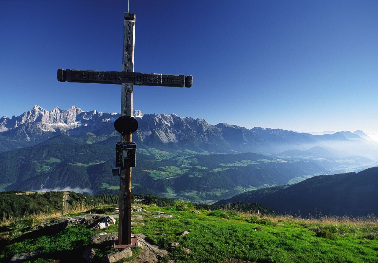 Oberhalb von Pichl beginnen wir unsere Wanderung an der Bergstation der Seilbahn Preunegg Jet. Vorbei an der Gasselhöhe Hütte wandern wir entlang des Wanderweges # 66 über das "Hahn'l" auf den Höhenrücken der Reiteralm und folgen dem Weg zum Gipfelkreuz der Gasselhöhe.