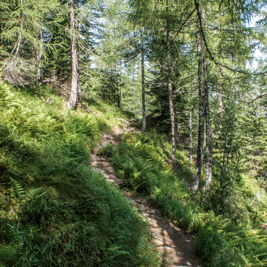 Nach einer kurzen Rast am Obertalbach zweigt man bei der Neualm wieder talauswärts auf den Wandersteig in Richtung Duisitzkarsee ab. Trittsicherheit ist hier einerseits wegen der vielen Wurzeln, andererseits aufgrund von kurzen Steilpassagen erforderlich. Im Allgemeinen ist der Weg zwischen Neualm und Duisitzkarsee jedoch ein gleichmäßiges Auf und Ab, ohne große Höhenunterschiede. Der Wanderweg schmiegt sich an die Hänge des Duisitzer Hahnkamps und führt duch einen Hochwald und Latschenfelder. Nach einer Gehzeit von wiederum ca. 1 1/2 Stunden erreicht man den Duisitzkarsee auf 1.640 m Seehöhe.