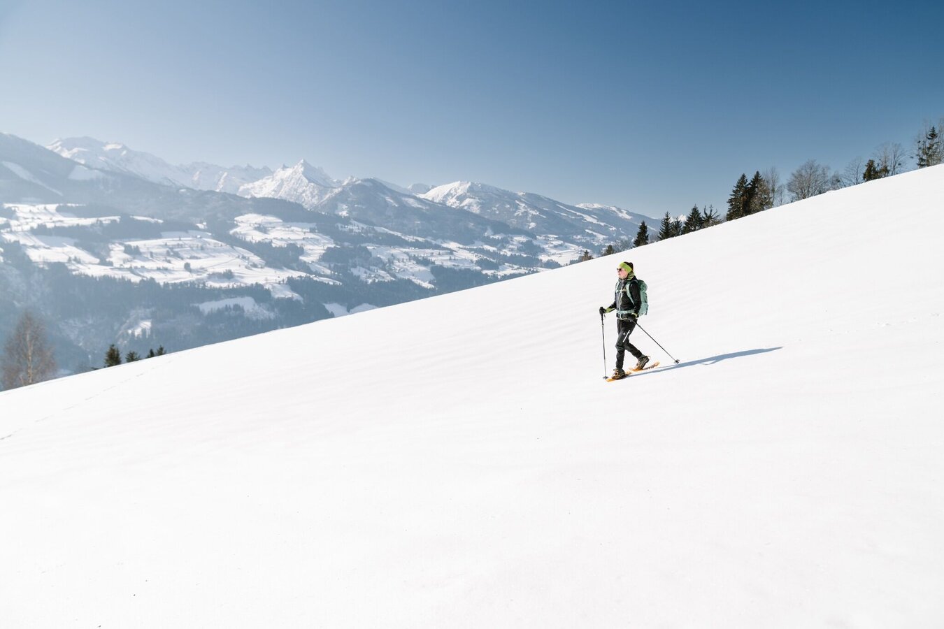 Schneeschuhe sowie Stöcke mit großen Schneetellern. Außerdem knöchelhohe, warme Schuhe, warme Kleidung, Handschuhe und Haube. Eventuell ein kleiner Rucksack mit einem warmen Getränk in der Thermoskanne.