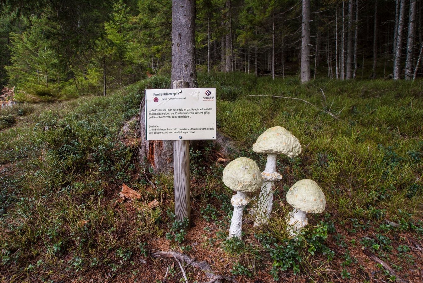 Familienfreundlicher Weg in Rohrmoos mit Infos zu heimischen Pilzen und Schwammerl. Entlang des Weges erfährst du einiges über die heimischen Pilze und Schwammerl. Mittels Nachbildungen kannst du dir ein besseres Bild von den schmackhaften und nicht genießbaren Pilzarten machen. Der Weg führt Dich großteils auf schönen Wald- und Forstwegen durch den Wald am Fuße der Hochwurzen. Parkplätze und Toiletten befinden sich bei der Gipfelbahn Hochwurzen, wo Du mit dem Familienhotel Austria auch eine Einkehrmöglichkeit hast.