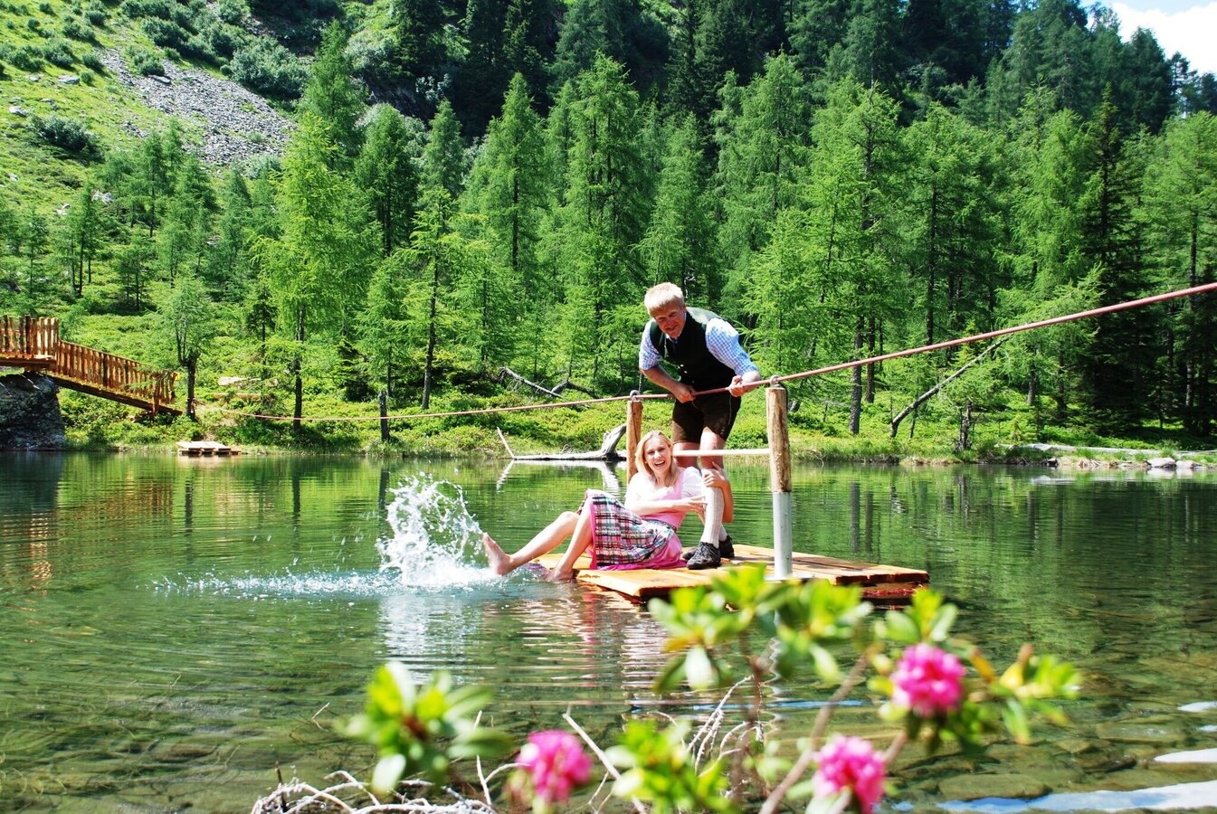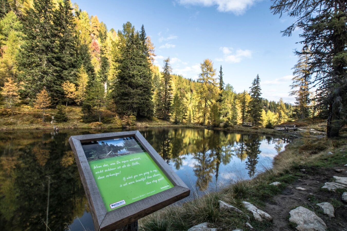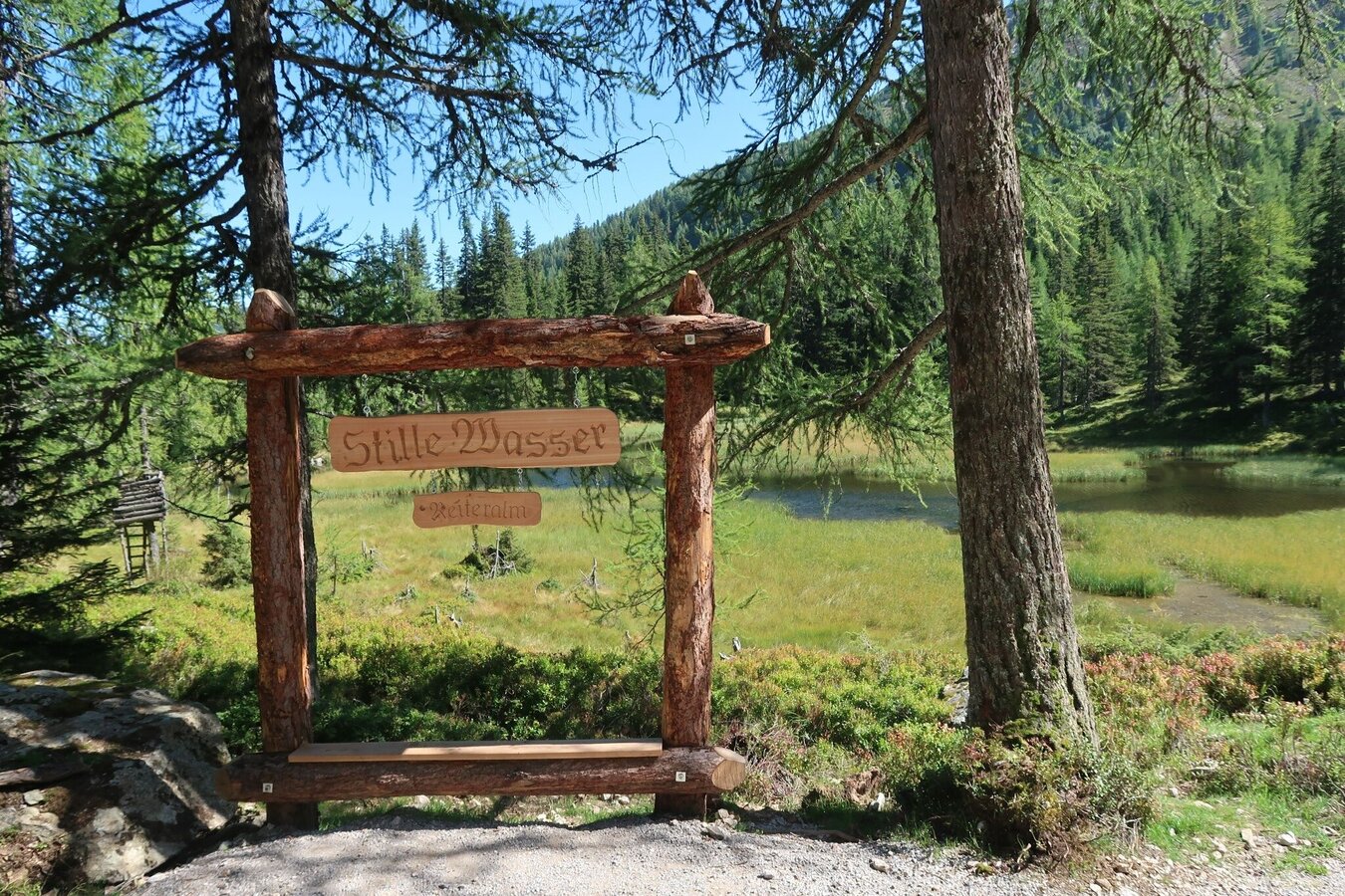 Der Weg zum Untersee ist eine wunderschöne leichte Wanderung für die ganze Familie. Ausgehend vom Reiteralmsee führt der Weg durch einen lichten gemischten Nadelwald zum Untersee. Auf dem Weg dorthin kommt man schon zuvor bei kleineren Seen vorbei, die mit gemütlichen Bänken zum Verweilen einladen. Am Untersee selbst gibt es ein kleines Floß für die Überfahrt über den See, eine schöne Aussichtsplattform und ebenfalls mehrere gemütliche Bänke zum Sitzen. Rundherum bieten sich zudem zahlreiche Spielmöglichkeiten (z.B. auch mit Wasserrädern) für Kinder.