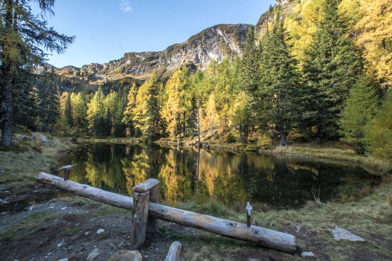 Über einige Serpentinen folgst Du dem Weg nun bergab bis du nach kurzer Wanderung einen kleinen See erreichst - von den Einheimischen liebevoll "Glackerch" genannt. Weiter geht es durch den lichten Wald zu einem weiteren kleinen See - dem Waldsee. Hier lädt ein idyllisch gelegenes Bankerl zum Verweilen ein.