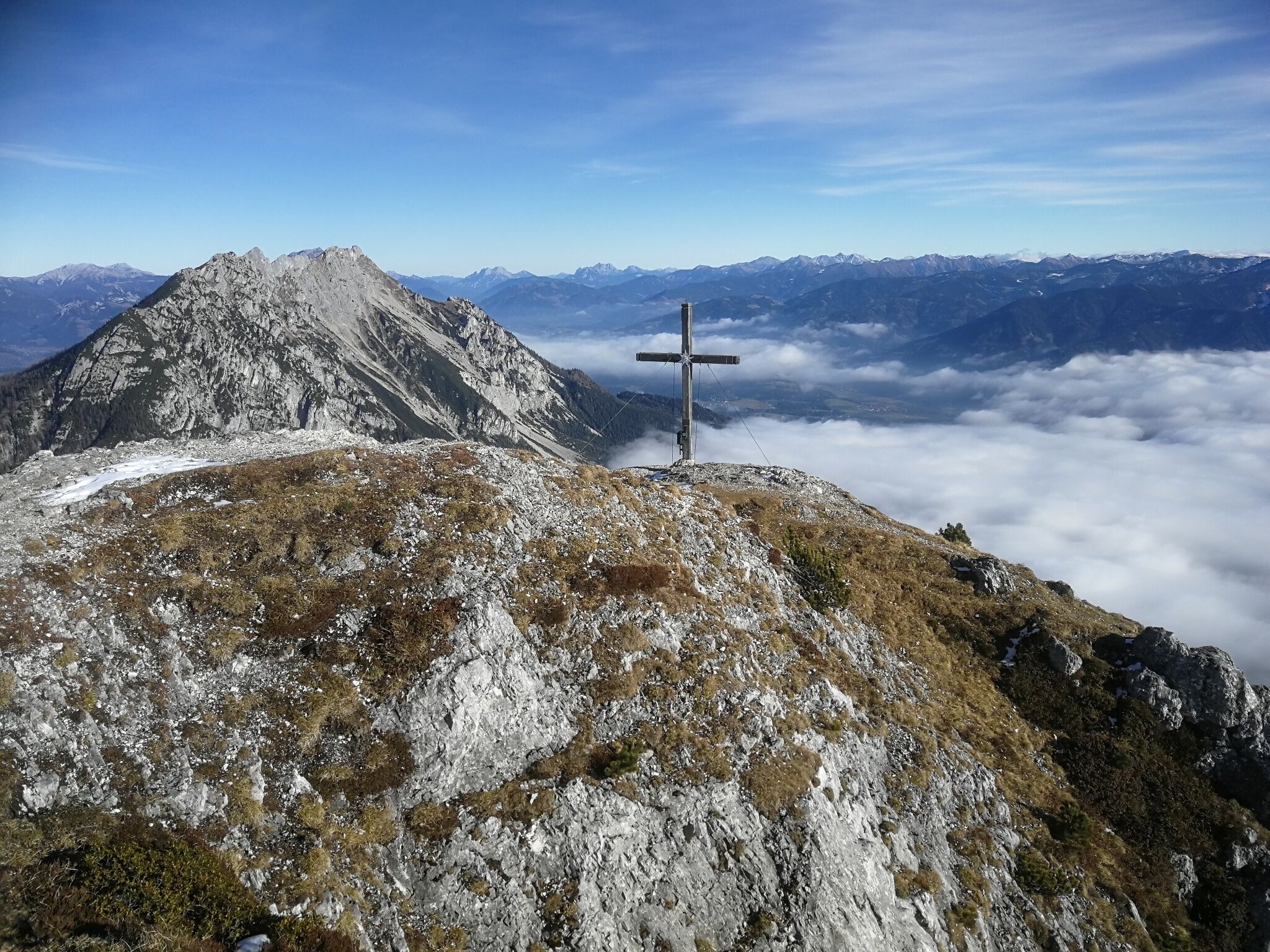 Durch eine Latschengassen wanderst Du nun über die Baumgrenze hinauf - von rechts schließt der eine oder andere Ausstieg eines Klettersteiges zum Wanderweg an. Schließlich wanderst Du gemütlich über die baumfreien Höhen zum Gipfel, der zum Verweilen und Genießen einlädt. Ein 360° Panorama mit einem besonders reizvollen Blick zum Dachsteingletscher und auf die karstige Hochfläche „Am Stein“. Richtung Osten blickst Du auf den weiten Talkessel von Gröbming, der durch den ganz nahe wirkenden felsigen Zackengrat der Kammspitze eindrucksvoll überragt wird.