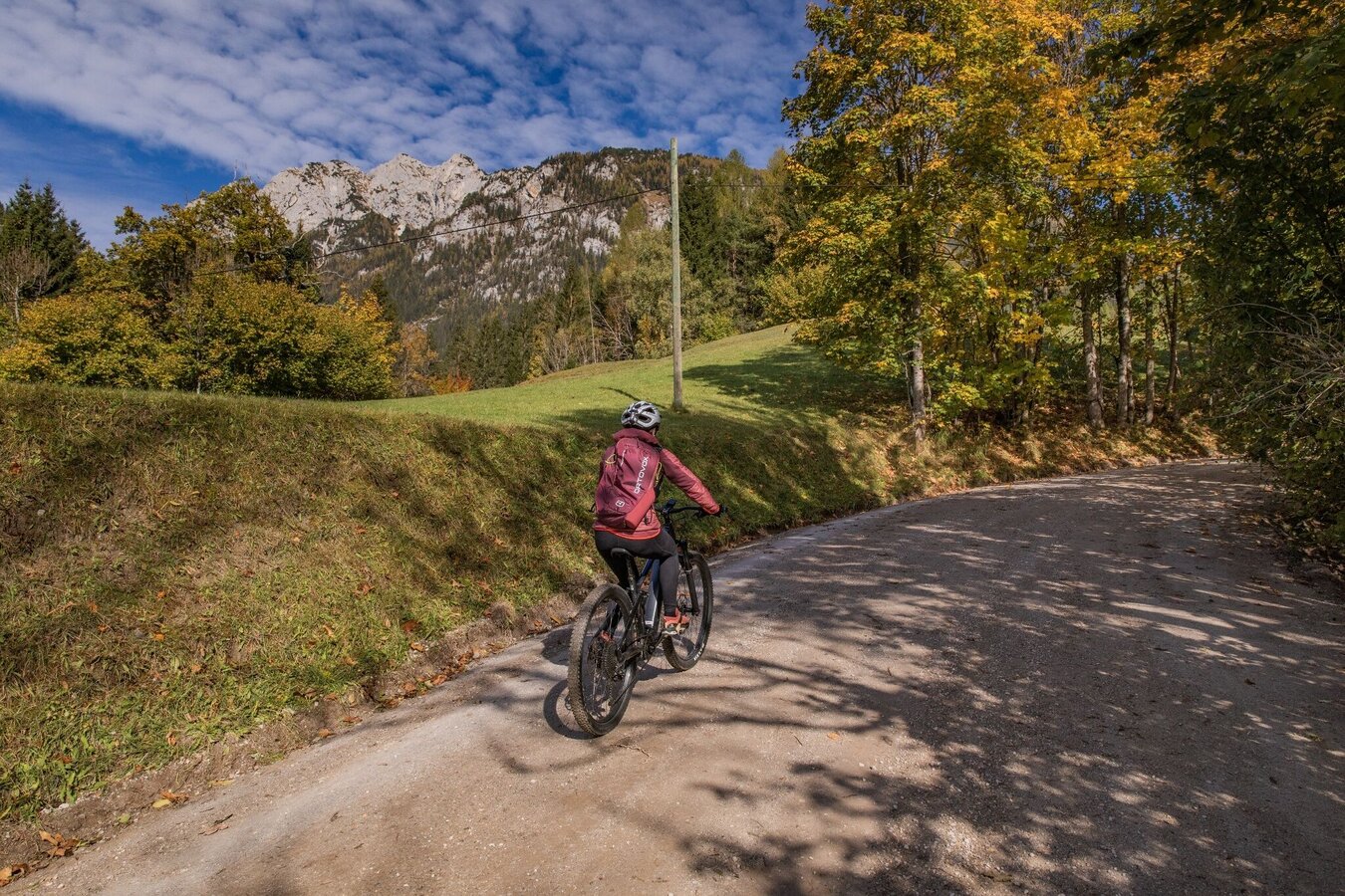 Der Rückweg verläuft über Gsengwand, Burgstaller und Passeck zurück nach Weißenbach. Ab Weißenbach besteht die Möglichkeit, den gebührenpflichtigen Singletrack zu nutzen, der für Sommercard-Besitzer kostenlos ist. Alternativ kann die Rückfahrt auf der regulären Straße zur Talstation Hauser Kaibling erfolgen.