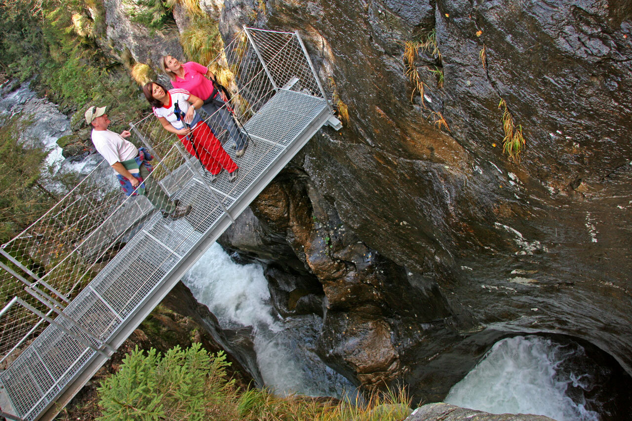 Ab dem großen Seeleiten Parkplatz beginnen sehr aufregende Teilstücke der ››Wilden Wasser‹‹ Wanderung – am Waldsteig Riesachfall und dem Alpinsteig "durch die Höll" kannst Du das Element Wasser in seiner reinsten Kraft spüren. Der prächtige Riesachwasserfall fällt in zwei Katarakten insgesamt 140 Meter zu Tal – mit Aussichtsplattformen die den höchsten Wasserfall der Steiermark in fast greifbare Nähe rücken. Wenig später kannst Du auf der 50 Meter (!) langen Hängebrücke den Wildbach in der Höllschlucht aus schwindelerregender Höhe betrachten. Danach gelangst Du über zahllose Stufen sicher durch die einzigartige Höllschlucht bis zur urigen Gfölleralm und wenige Minuten weiter zum malerischen Riesachsee. Am linken Seeufer lädt die Kaltenbachalm zur Rast ein. Zurück zum Seeleitenparkplatz empfehlen wir den bequemen Forstweg.