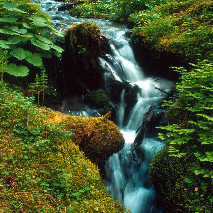 Vom P auf ebenem Almweg ca. 30 Minuten durch das liebliche Hochtal mit den vielen bewirtschafteten Almen bis zum Talschluss. Hier beginnt der steilere Anstieg durch das riesige, von 3 Seiten umschlossene Kar. Kleine Wasserfälle, große Felsblöcke, alte Lärchen u. Zirben säumen den schmalen Steig durch die Langschneerinne bis zum grasigen Rücken, der einen schöne Blick auf den 100 m tiefer liegenden Stierkarsee gewährt. (Gut 2 Std. Gehzeit bis hierher). Der Weiterweg gestaltet sich ganz anders: der Höhenrücken bietet freie Sicht u. der Steig führt nun über mehrere Felsstufen in vielen Windungen (Vorsicht – auf die Markierungen achten!), an kleinen Wasserfällen vorbei, bis zu einem flachen, frei liegenden Felsplateau mit vielen kleinen Lacken u. Seen. Ein „Mini-Klafferkessel“ in einer hochalpinen Umgebung mit freiem Blick nach N. Rasen- und Moospolster säumen die kleinen Seen und Lacken, die erst im Juli eis- und schneefrei werden. Natürlich lockt der Gipfel der Hochwildstelle, dessen Südostgrat über die Trattenscharte u. Wildlochscharte erreicht werden kann – ca. 1,5 Std. Gehzeit mit leichter Kletterei sind es bis zum Gipfel ab Goldlacken. Nur für erfahrene Bergsteiger! Aber zurück zu den Goldlacken – sie sind ein attraktives, einsames Tourenziel. Abstieg am selben Weg.
