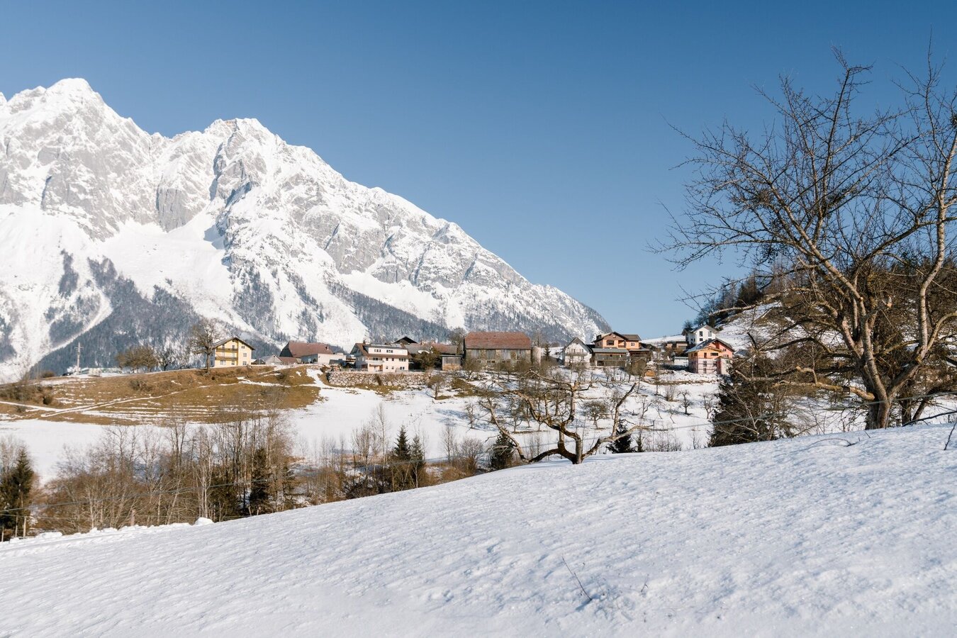 Ein entspannender Spaziergang vom Ortszentrum Niederöblarn in die sonnigen Ortsteile Zamberg und Gritschenberg mit schönem Ausblick zum Grimming und auf den Ennsboden mit dem Flugfeld der Sportunion Niederöblarn.
