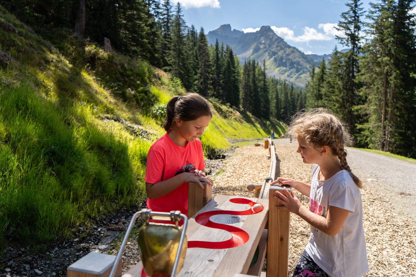 Der Kinder-Erlebnisweg von der Bergstation der 8er-Sesselbahn Kaiblinggrat in das Naturidyll Kaiblingalm bietet lustige Geschicklichkeits-und Spielstationen für die ganze Familie. Dich erwarten kreative Kugelbahnen, Motorik-Stationen zum Klettern, Balancieren und Ausprobieren, und unterwegs erfährst du spielerisch Interessantes über Schafe und ihre Wolle.