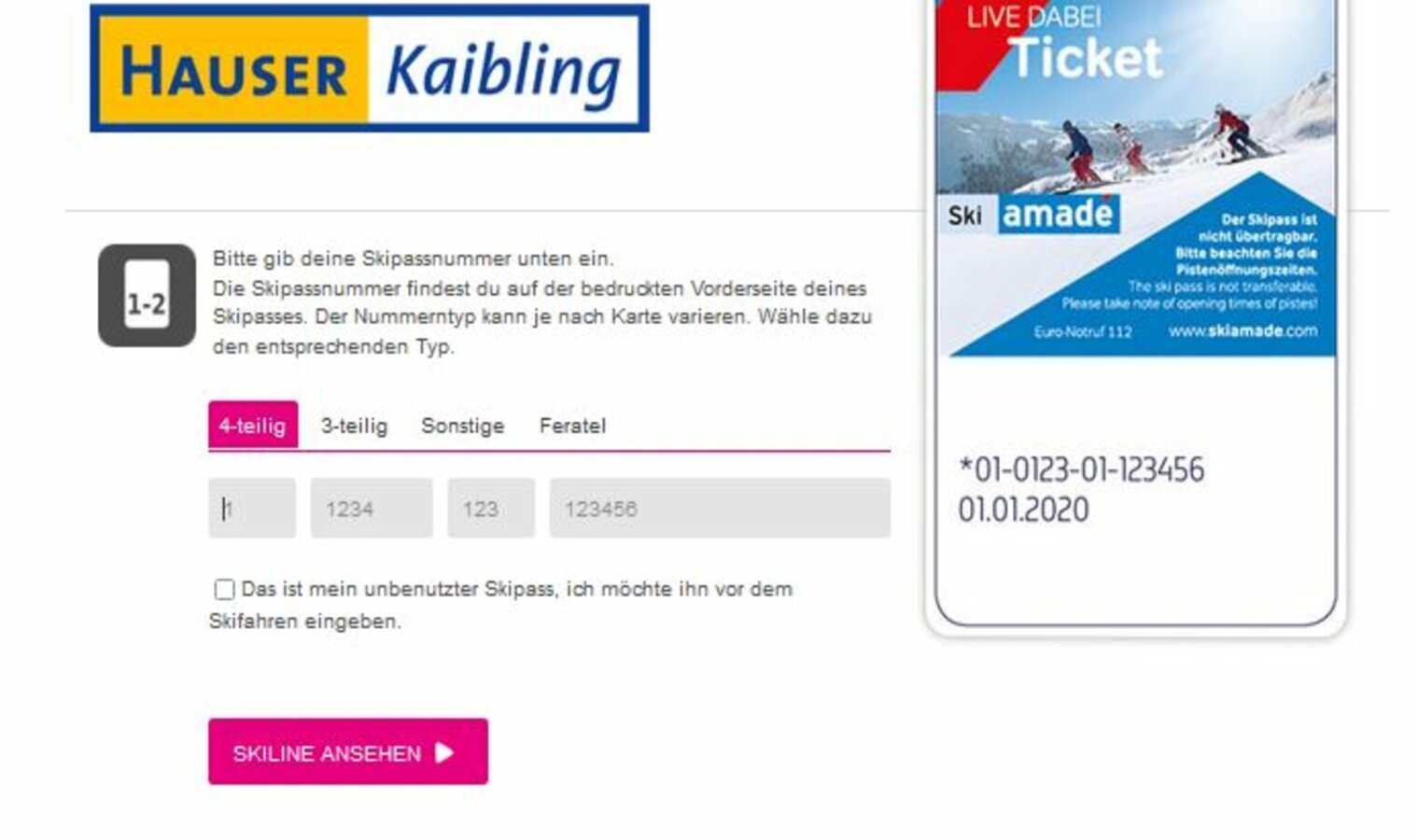 - Anmelden und unter "4-teilig" deine Skipassnummer eingeben.