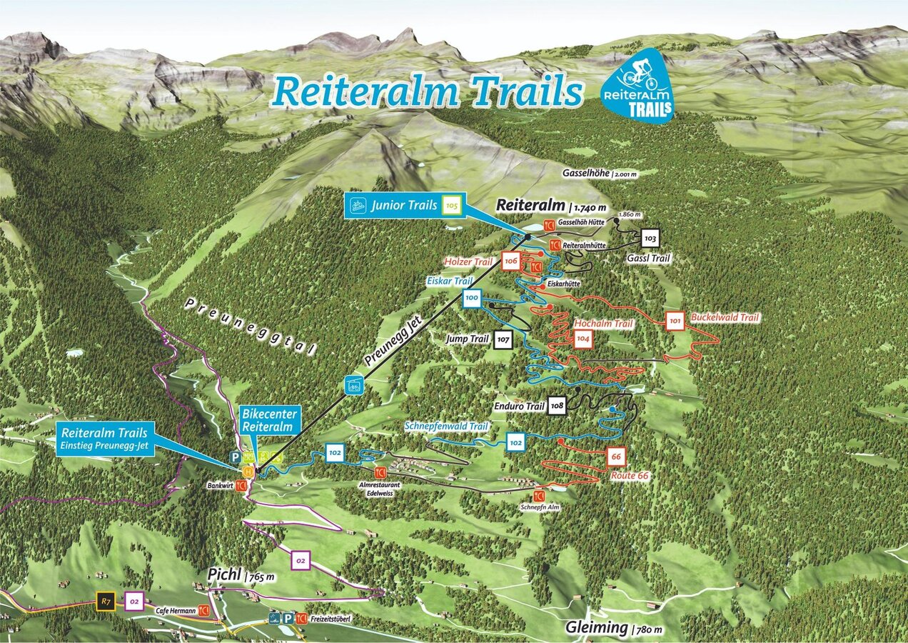 PS: Mountain bikers who would like to save themselves some time and energy can take advantage of the mountain bike transport of the gondola lift and then bike down the reiteralm trails to the valley with full power.