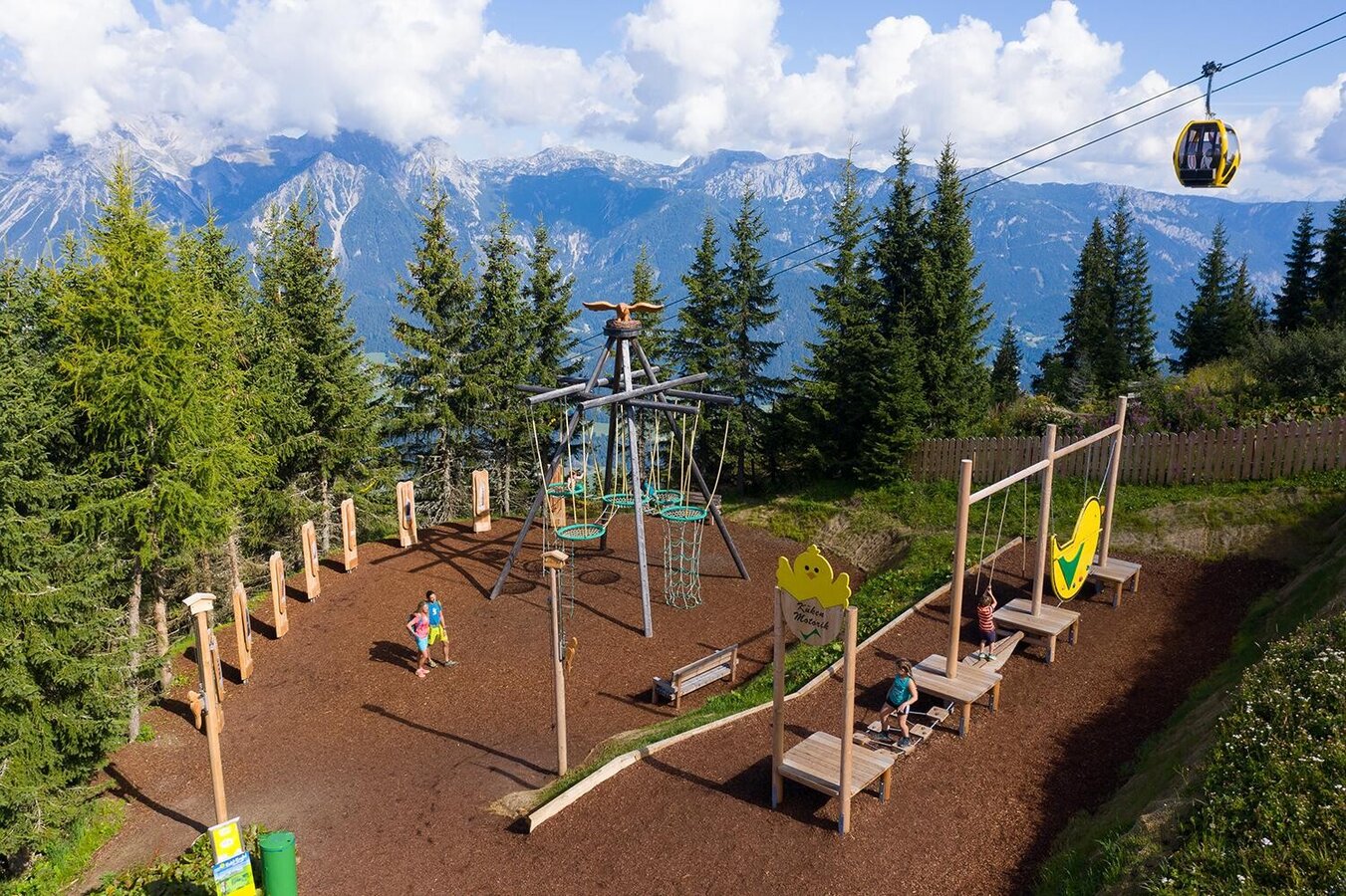 One of Hopsi’s favourite places to be is the gigantic piste caterpillar made from wood. He likes to think about the winter on the Planai even when it’s hot and summery outside – logical right? Next to the caterpillar, our old Dachstein-Gondala invites to play, climb and have fun.