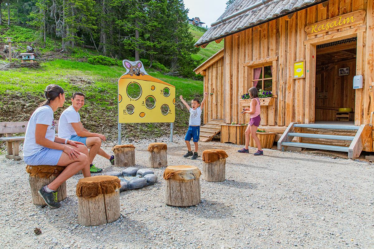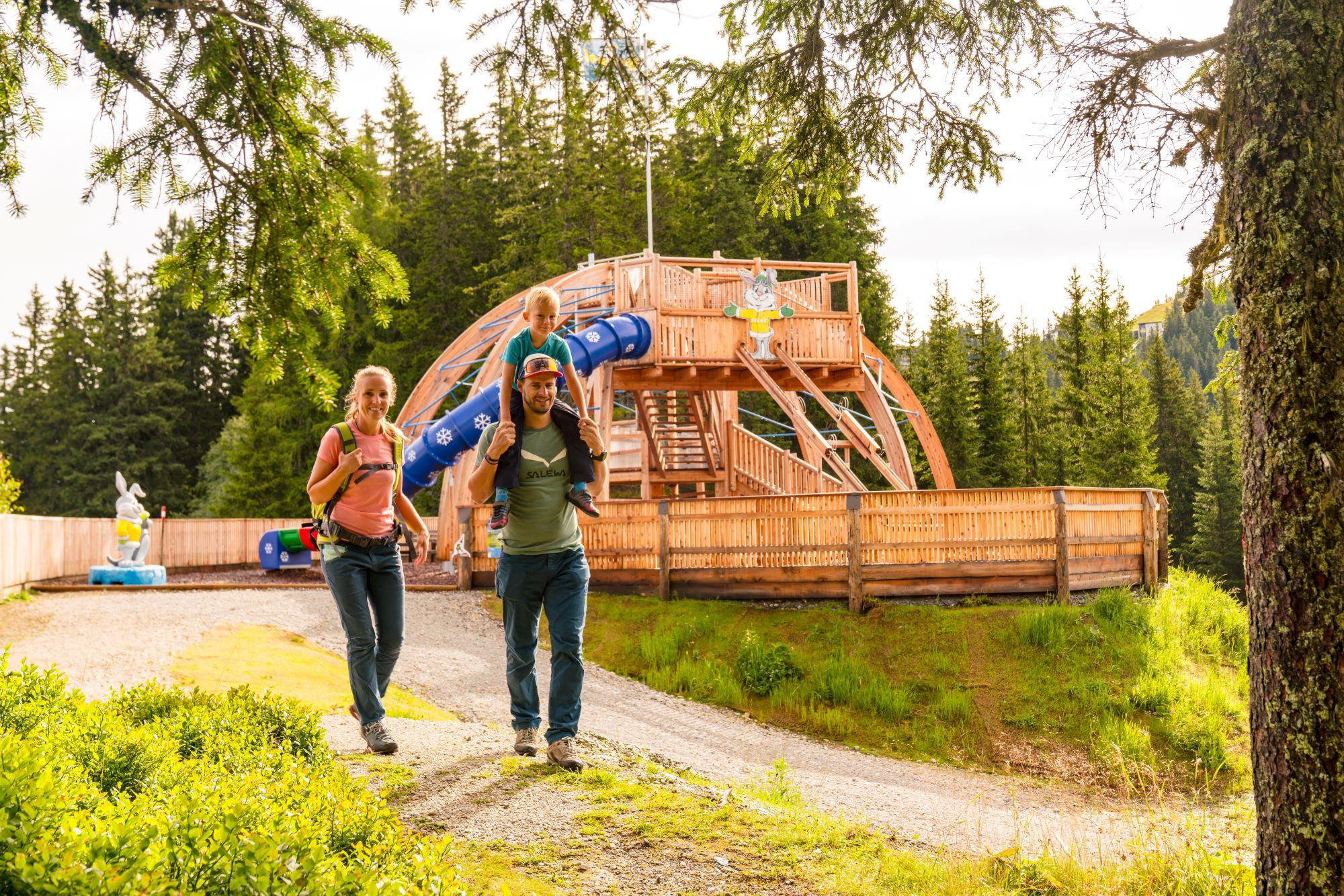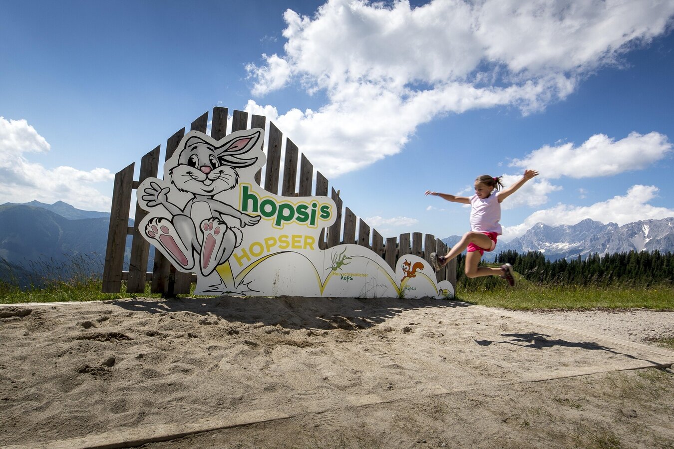 Von der Kugelbahn bis zum Schladminger KristallThe circular trail starts at the gondola’s top station, is 1.5 kilometres long and suitable for strollers. Along the trail following Hopsi’s tracks, you can find lots of swings, slides, climbing elements, a three-part marble run and Hopsi’s own “water world” featuring a lake and new installed flumes. The perfect place for a refreshing dip in the water on hot summer days!