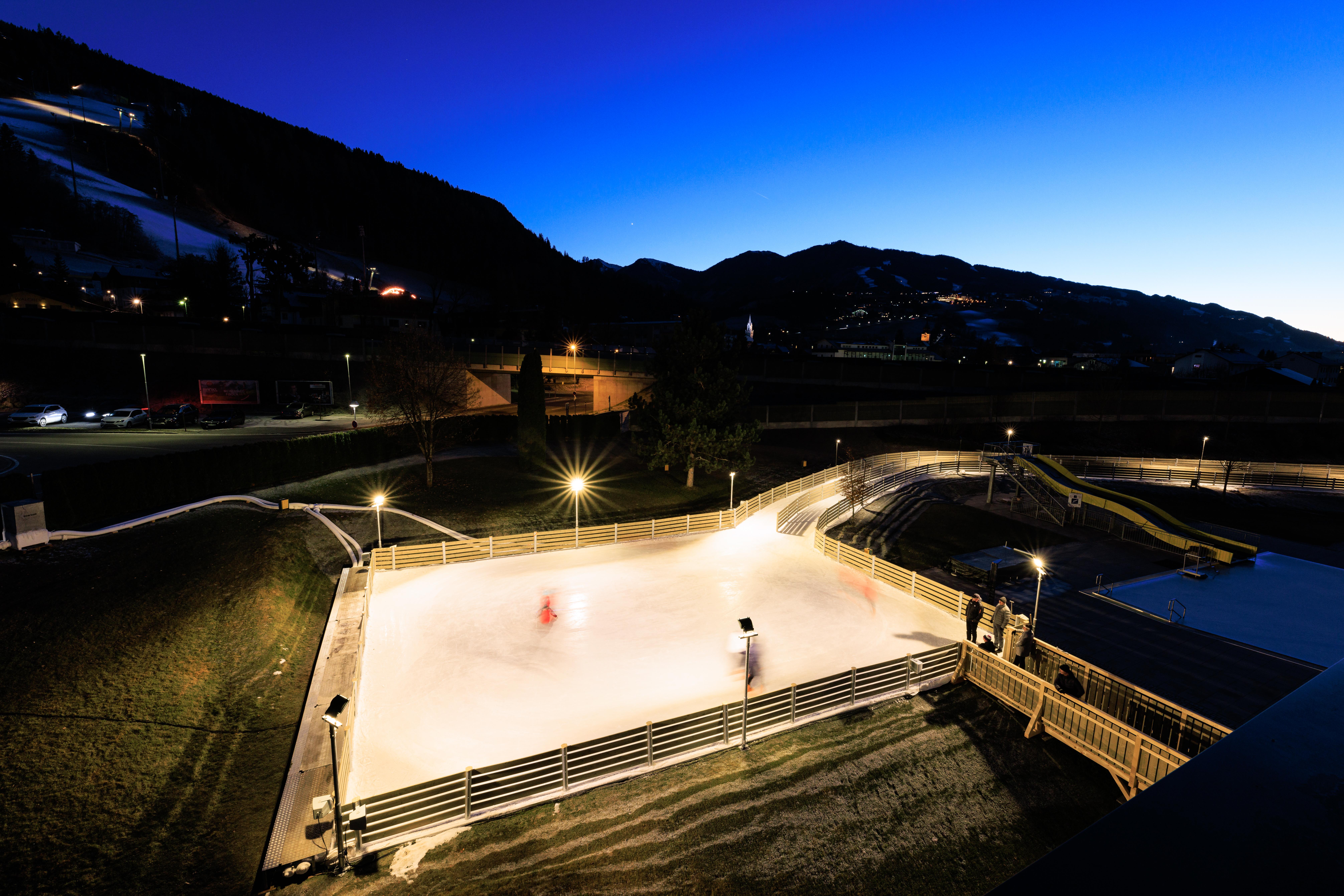 Even in cold temperatures, exercise in the fresh air is good for you, especially when it's as much fun as skating on two blades! Enjoy your swings on a 200 meter long skating rink + extra loop.