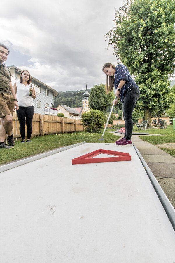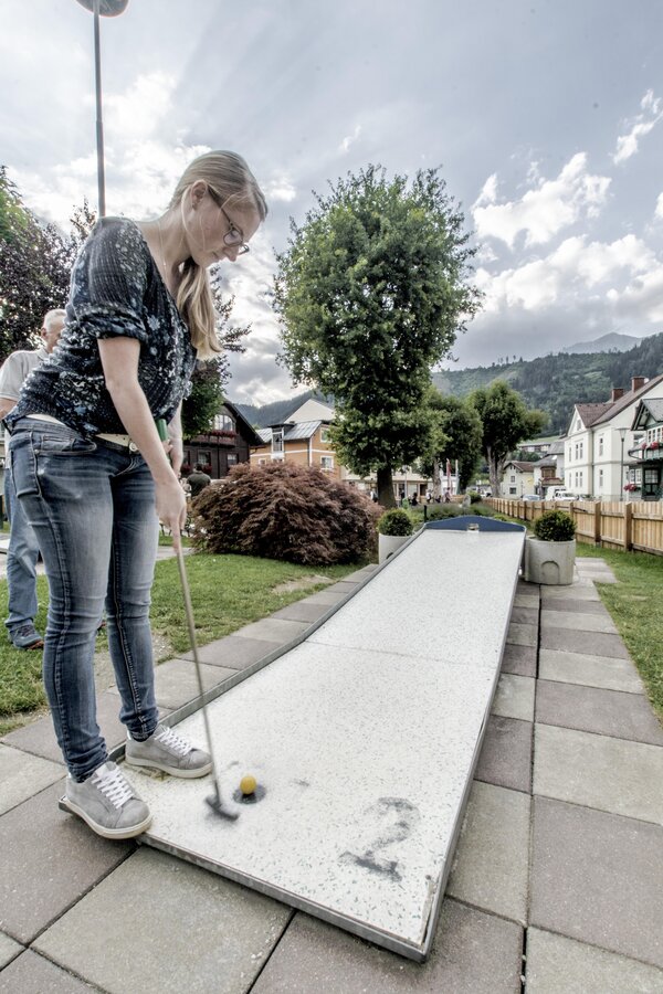 Whether alone, with family or friends, 15 holes guarantee fun and excitement on the Schladming miniature golf course.