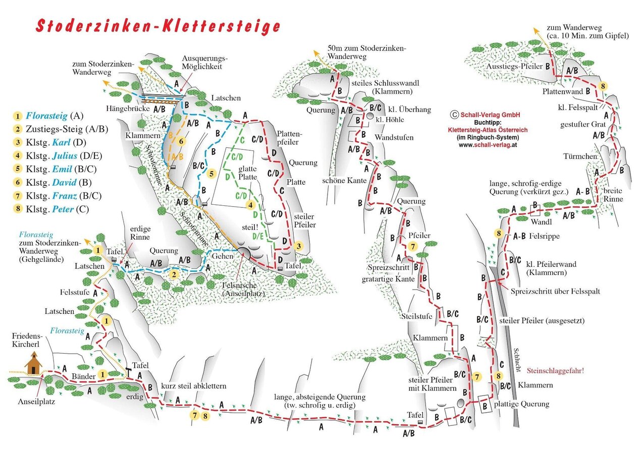 Stoderzinken via ferratas: Ideal via ferrata for beginners with 8 variants to get to know. Different levels of difficulty from A to E. The conclusion from via-ferrata garden leads over a suspension bridge.