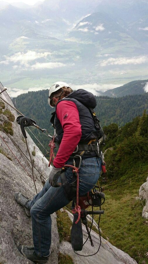 NEW: A new, additional via ferrata was built by Hans Prugger from Ramsau in 2020 for the existing via ferrata garden and the "Franz" via ferrata on the Stoderzinken, which was built in 2018. In addition to the via ferratas “Karl, Julius, Emil, David and Franz”, the 450m long via ferrata “Peter” marked with difficulty level B / C now enriches the Stoderzinken. The entrance is on the right-hand side after the Friedenskircherl at the Florasteig junction. At 420 m, the youngest via ferrata in the via ferrata park on the Stoderzinken is the longest Via Ferrata on the Stoder and comes closest to the summit. The difficulties with B / C are relatively constant and are interrupted after a 2/3 climb length by a long, light crossing. With the via ferrata Franz and Peter, the Stoderzinken has become a worthwhile, independent via ferrata destination, which rightly outstrips its famous neighbor, the Dachstein, in terms of enjoyment via ferrata.