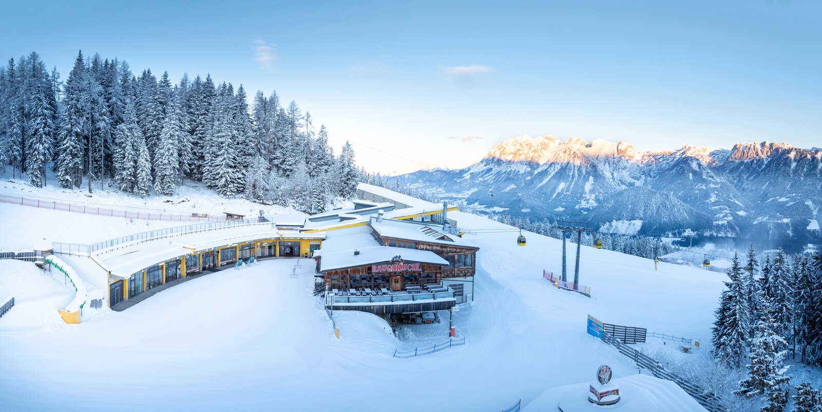 Stoni's Rauchkuchl is located next to Hauser Kaibling's 8-seater gondola lift mountain station - a lovingly converted hut with a cozy atmosphere made by wood, stone and warmth. Whether it's classic Austrian home cooking, homemade doughnuts, the specially brewed Stoni's Rauchkuchl beer or lively après-ski for young and old - this is where tradition meets atmosphere. (Note: It can also be reached without skis via the top station of the gondola lift).