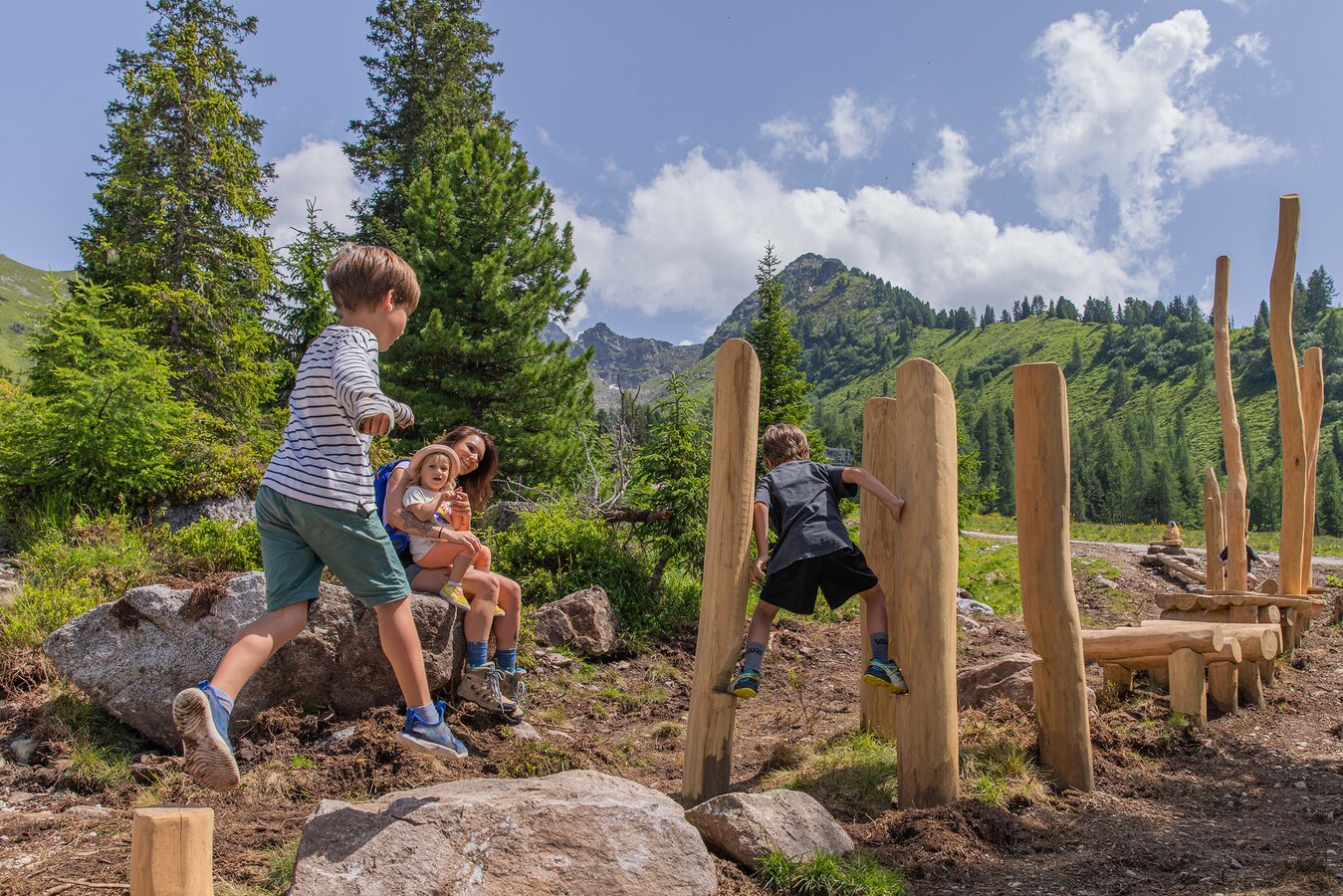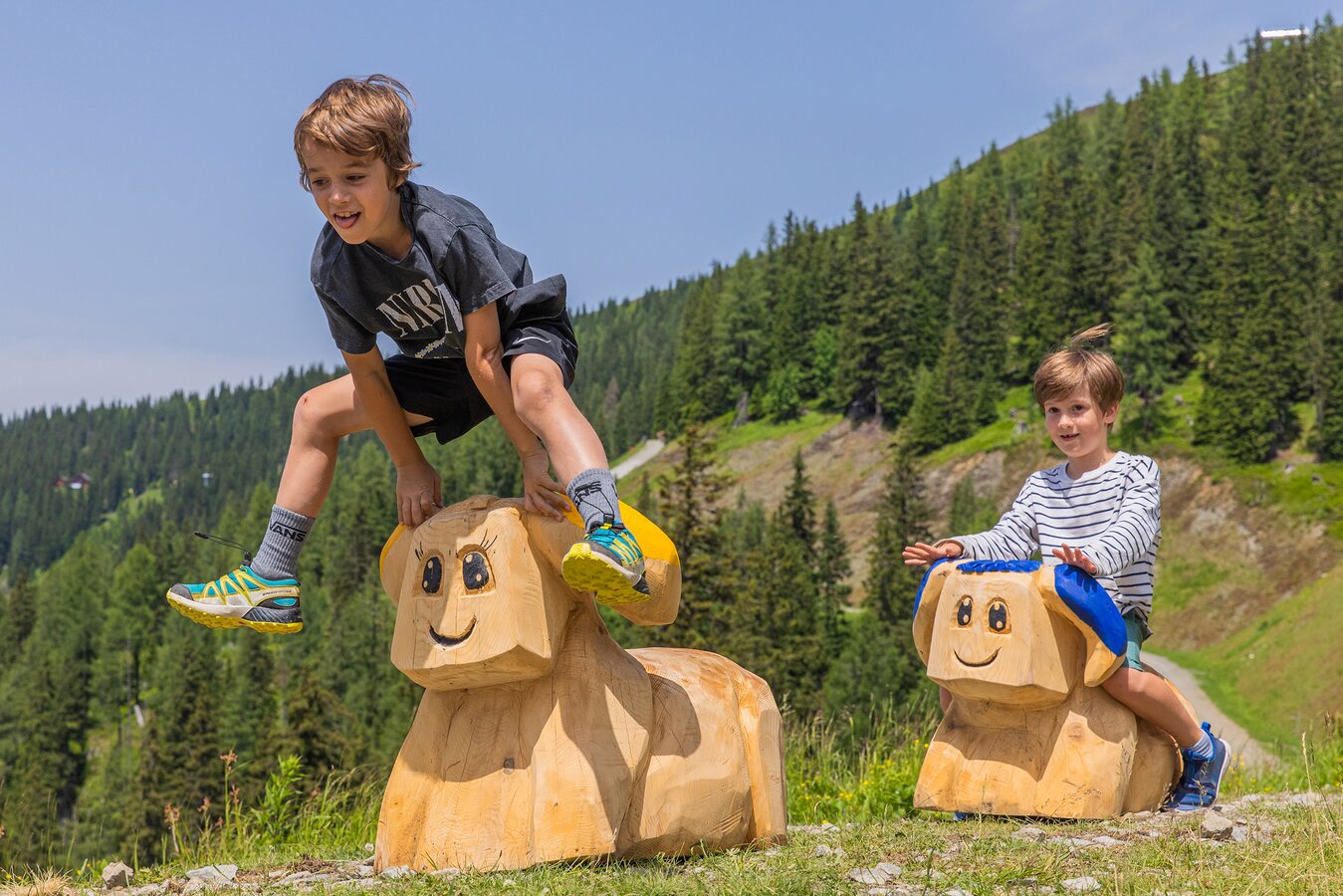 Around the SCHAFsinn Lake, it's not just about play and adventure, but also about peace and enjoyment. Numerous rest areas invite you to enjoy the fresh mountain air and let your gaze wander over the impressive Dachstein mountains. If you fancy regional specialties, you will find what you are looking for in the surrounding summer huts: Hearty alpine delicacies and sweet treats await you to round off your excursion in culinary terms.